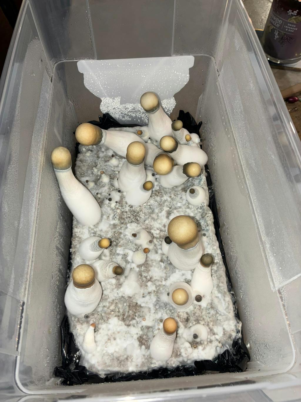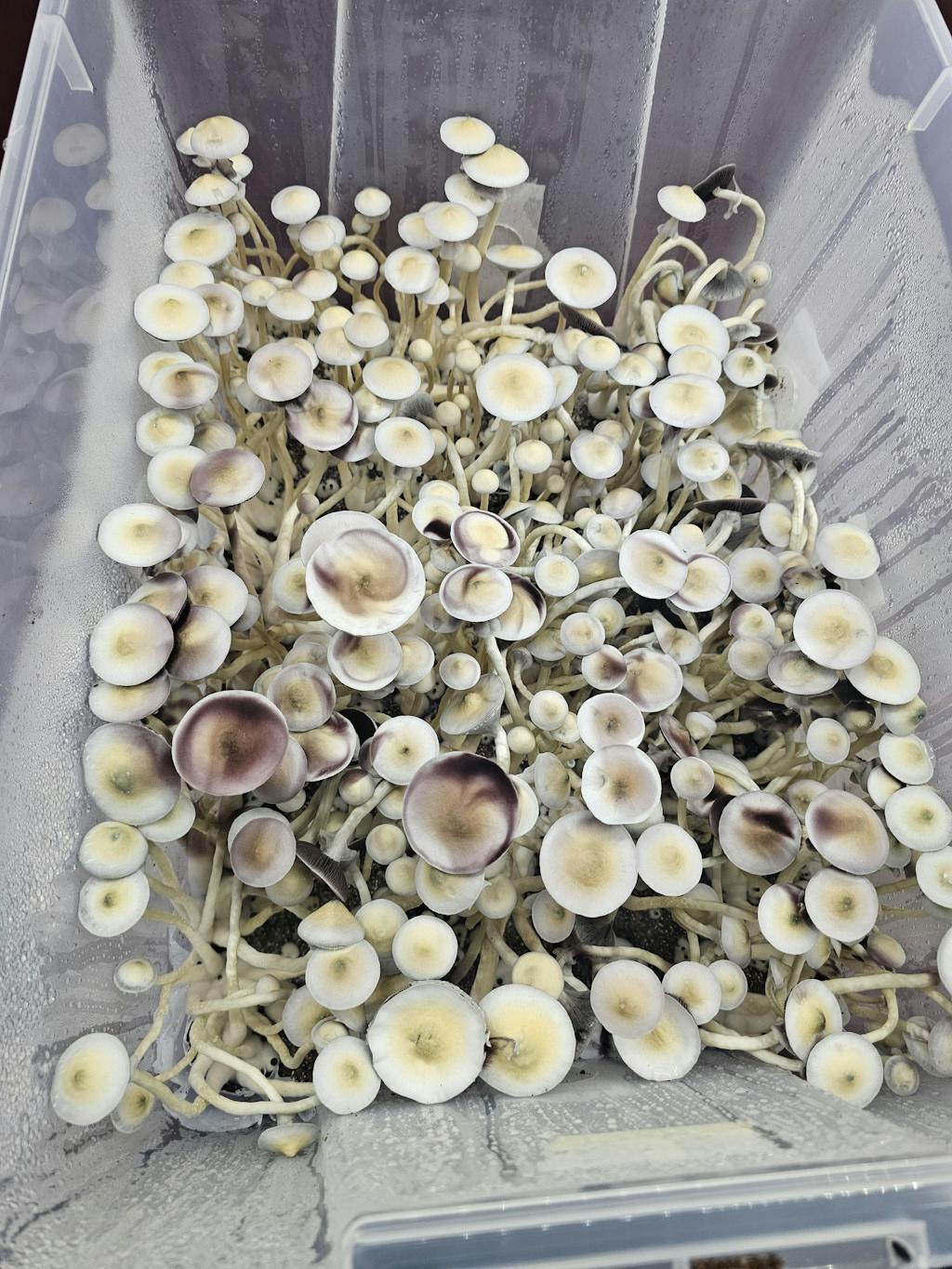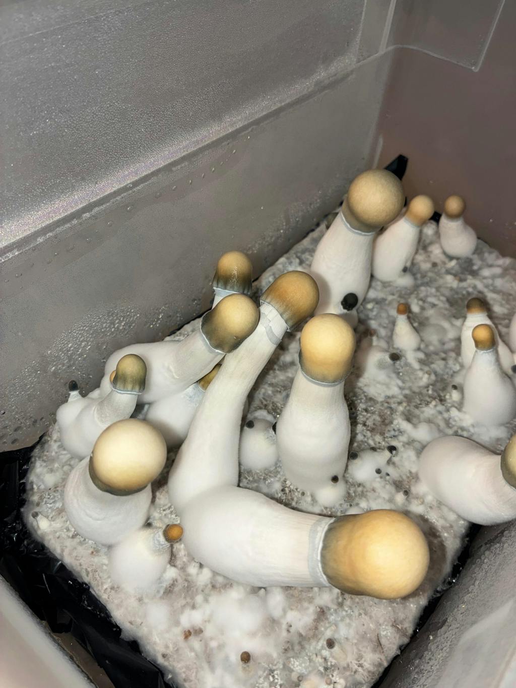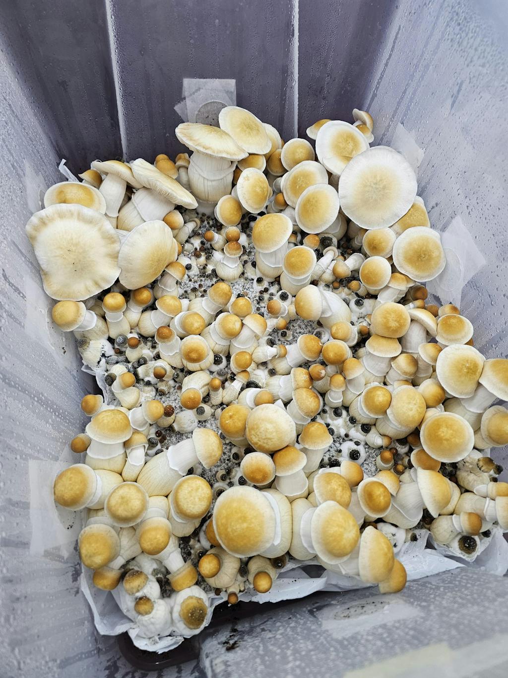 This sounded like a good cultivar to start with and it didn't disappoint. A newbie to cultivation I had no idea how to do this. EG took a minute to populate the spawn but once I got the hang of the right environment substrate population and fruiting was a breeze. 36g from the first flush in Personal Fable tub!!