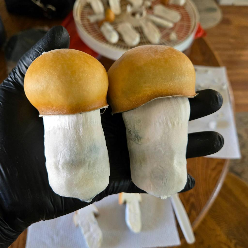Big fruit with a pure white and blue stem that has been fun to grow. Multiple 100+ grammars. This was my first grow. Thank you Tanasi
